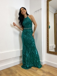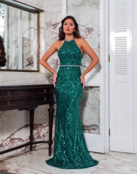 Vestido Longo Paetes Verde