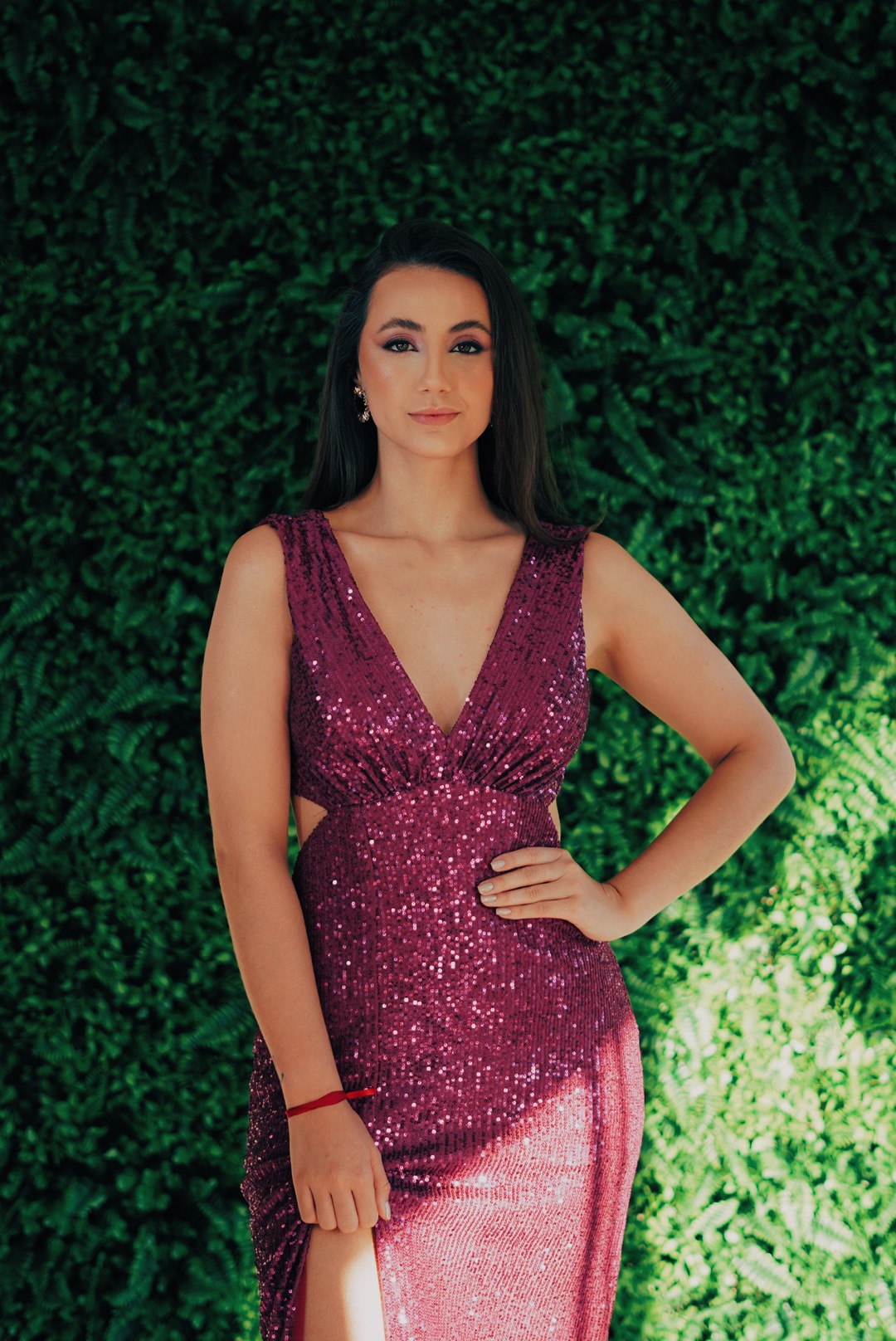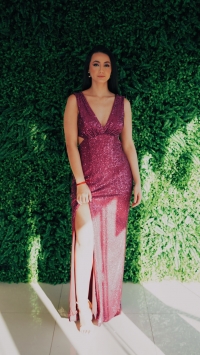 Vestido Longo Paetes Rosa Fucsia