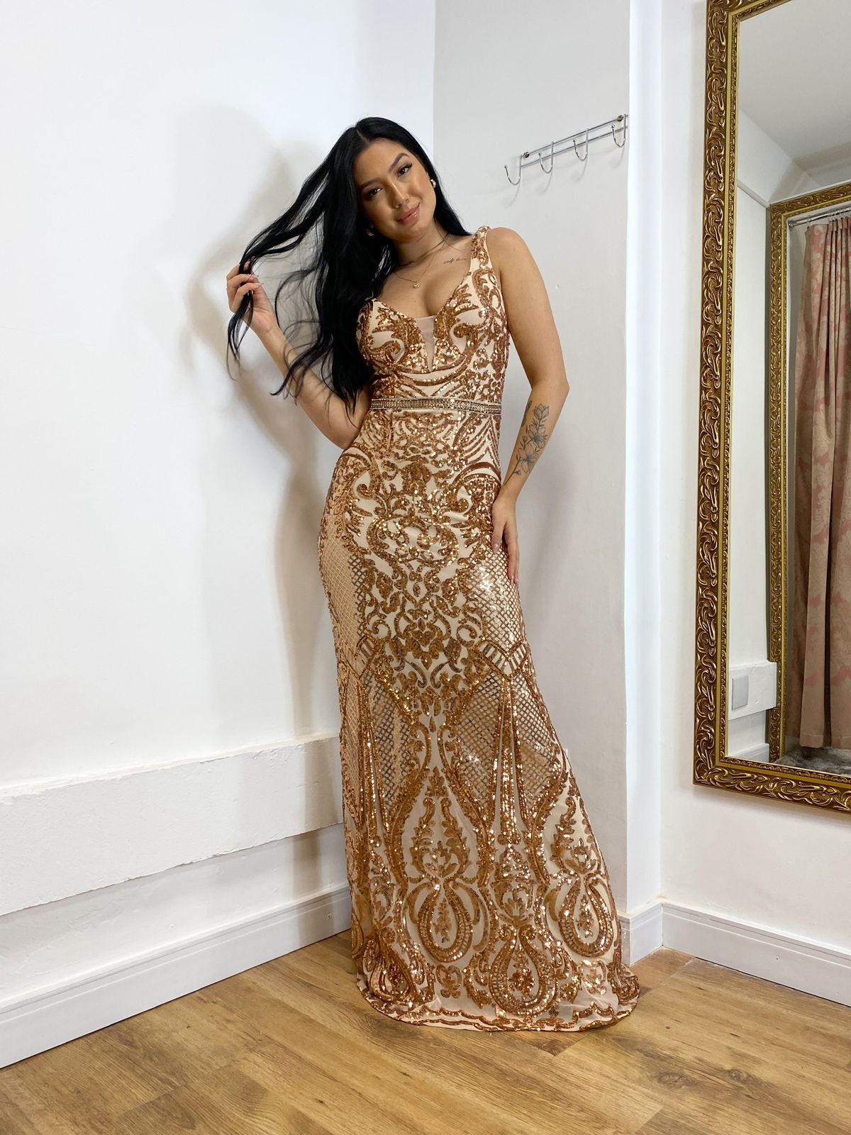 Vestido Longo Paetes Dourado