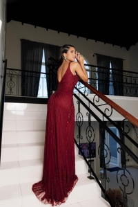Vestido Longo Sereia Marsala decote costas