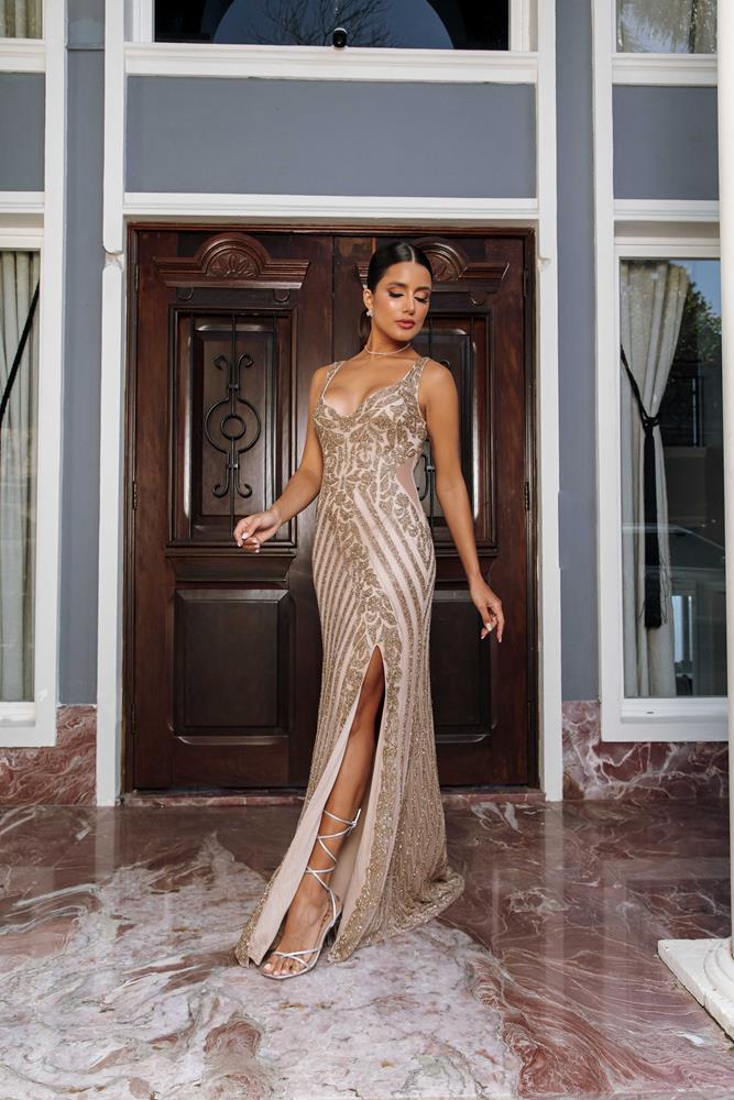 Vestido Longo Sereia Dourado c/ Furtacor