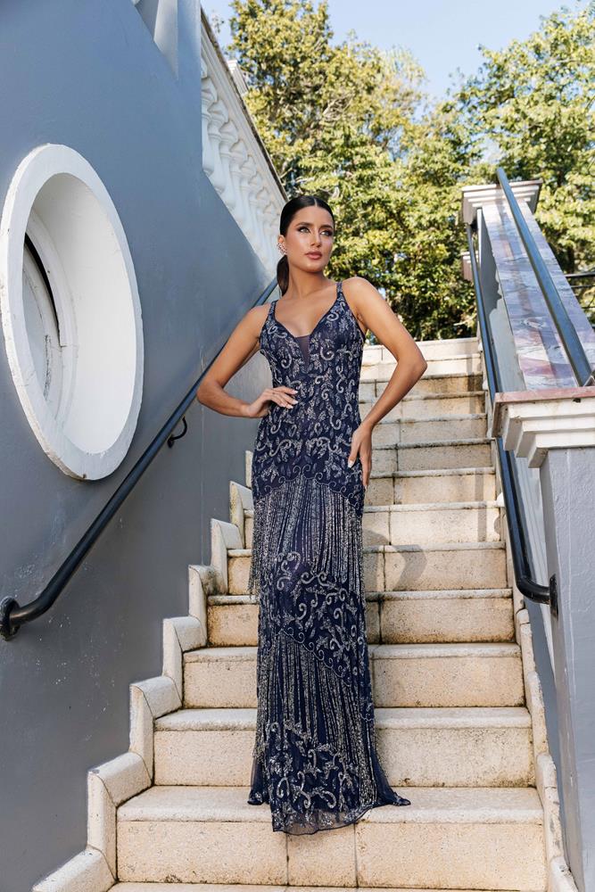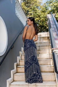 Vestido Longo Azul Marinho c/ Franjas