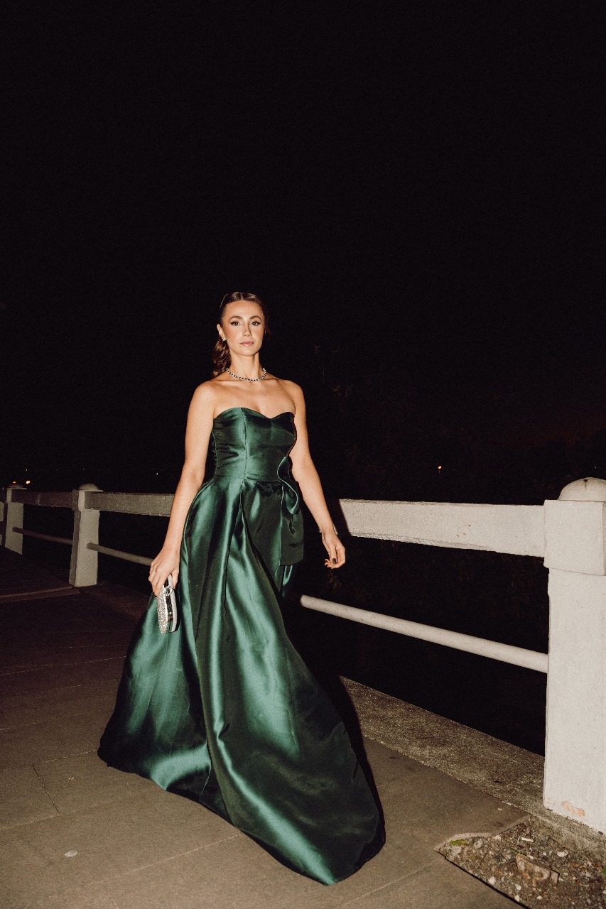 Vestido longo verde escuro