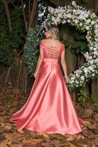 VESTIDO ZIBELINE OMBRO A OMBRO GODÊ CORAL