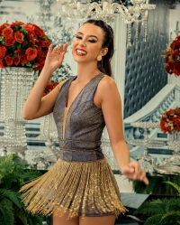 Macaquinho todo bordado Azul Marinho c/ Dourado