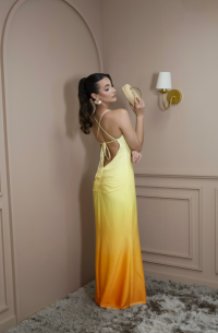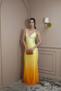 Vestido longo amarelo com laranja