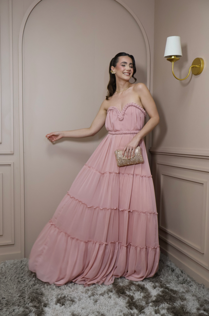Vestido longo rosê