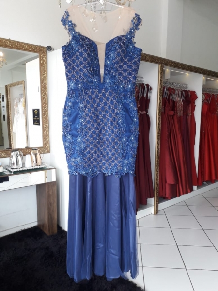 6119- VESTIDO LONGO RENDA BORDADO 2 EM 1