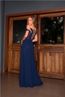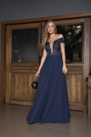 6097- VESTIDO LONGO OMBRO A OMBRO EVASÊ BORDADO