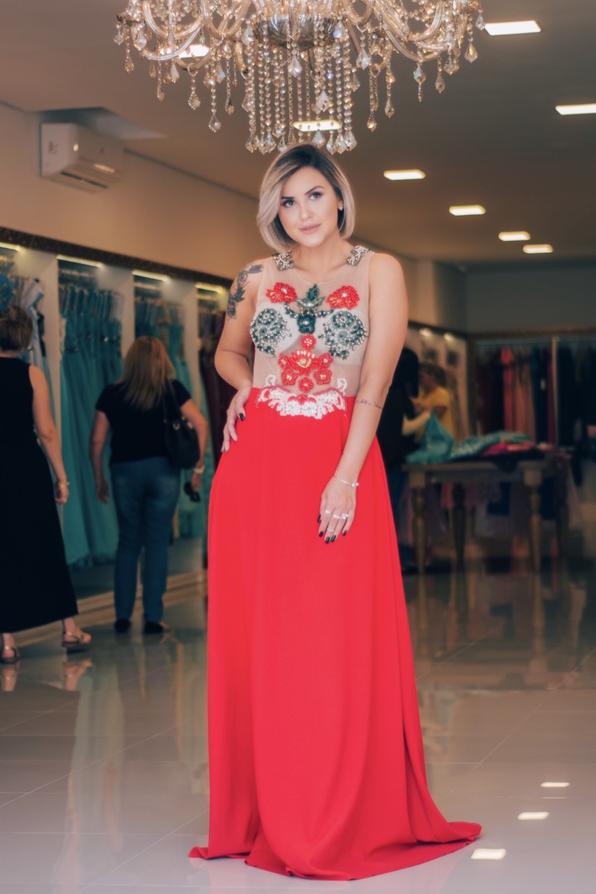 4928- VESTIDO LONGO EVASÊ COM APLICAÇÃO GUIPIR