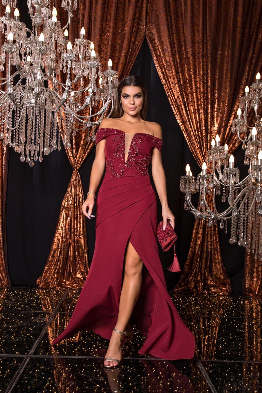 VESTIDO SEREIA OMBRO TOMAS BORDADO