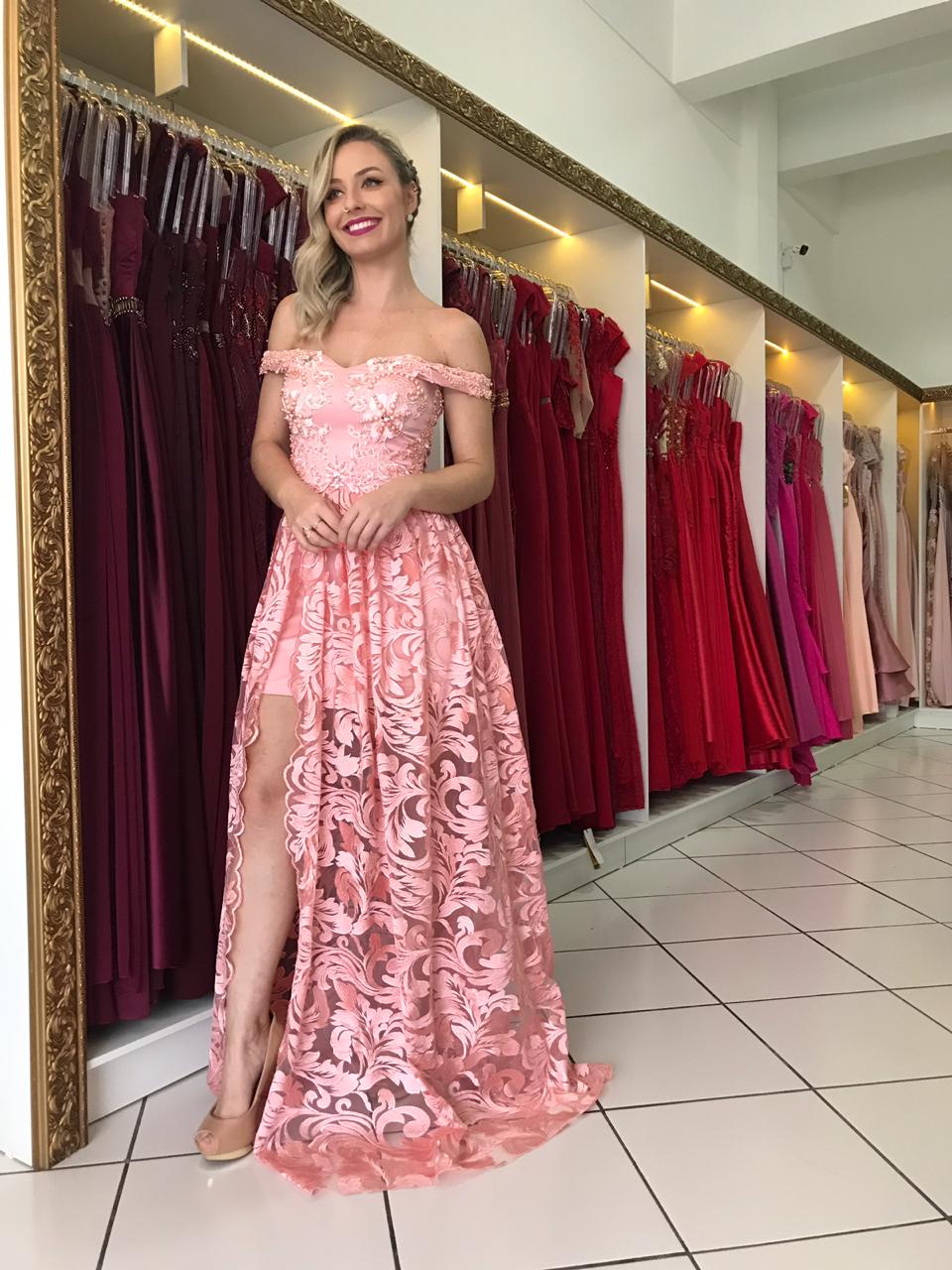 VESTIDO OMBRO A OMBRO RENDA COM FENDA