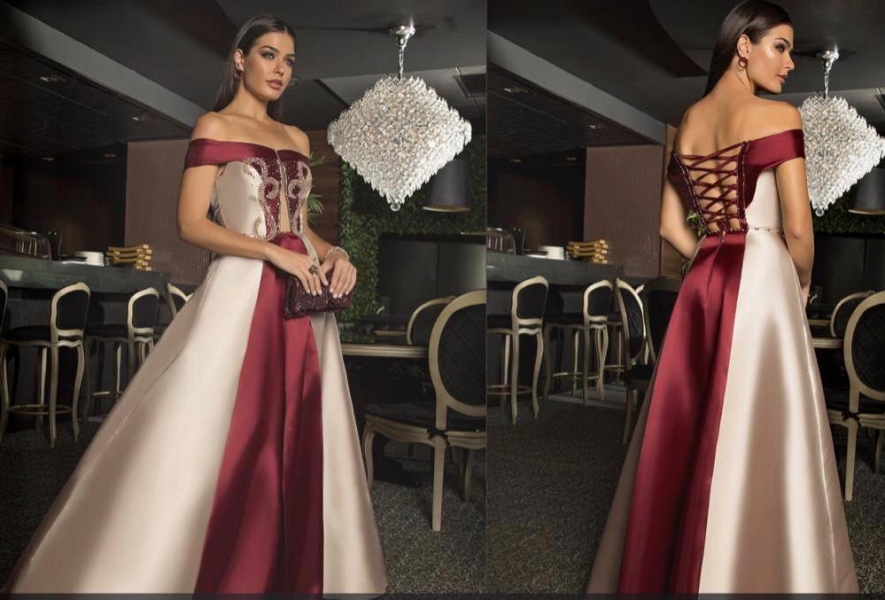6010- VESTIDO OMBRO A OMBRO BICOLOR ZIBELINE GODÊ