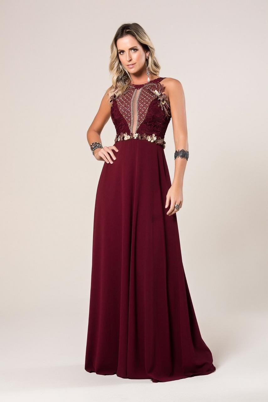 5191- VESTIDO LONGO EVASÊ BORDADO 3D