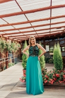 5122- VESTIDO LONGO REGATA BICOLOR EVASÊ BORDADO