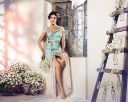5351- VESTIDO LONGO OMBRO A OMBRO RENDA BORDADO