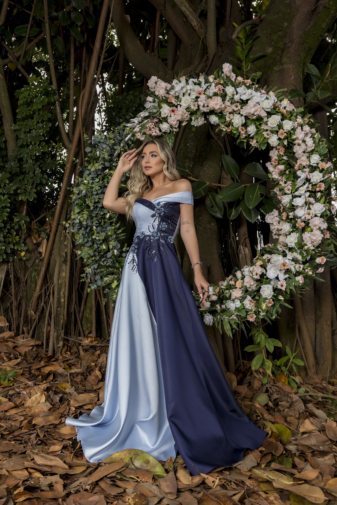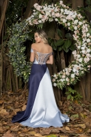 6059- VESTIDO LONGO OMBRO A OMBRO BICOLOR ZIBELINE